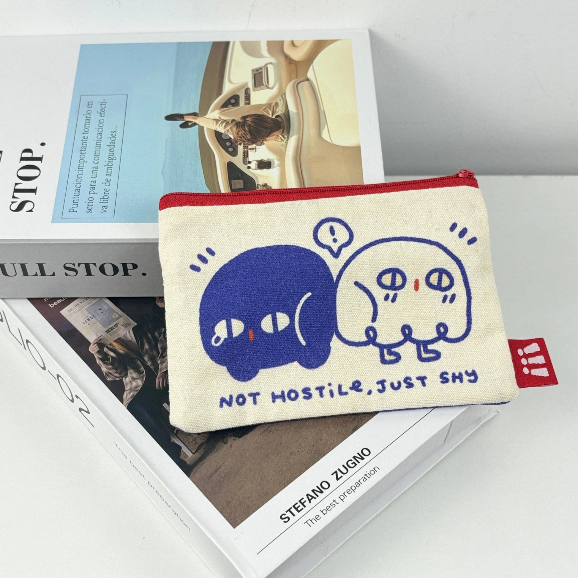 Keep your essentials close and your personality even closer with the SHAI Canvas Cosmetic Bag. Featuring a playful “Not Hostile, Just Shy” design, this charming pouch blends practicality with a dash of humor — perfect for daily organization or gifting.